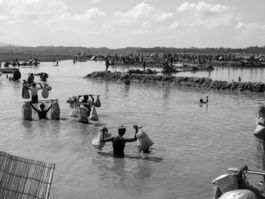Rohingya refugees cross the Naf River from Myanmar into Bangladesh.