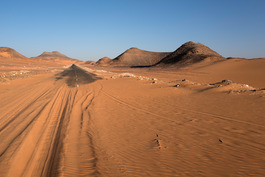 Egypt. Aswan. 2017. Sand drifting onto the road near Lake Nasser.