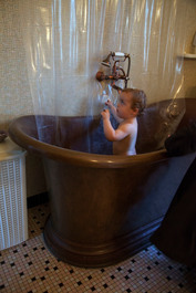 FRANCE. Holidays in Brittany. 2009. Gaston discovers an old bathtub....