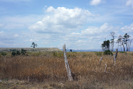 The remains of trees and overgrown vegetation cover an area devastate by the 2011 Tsunami in Miyagi Prefecture, near the Japanese city of Sendai.