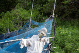 A mannequin used as a scarecrow on a field in the outskirts of Seongju.
