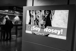 USA New York. Amtrak at Penn Station. Anti-terrorism video in Spanish. 2017