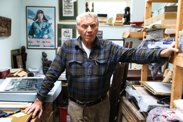 GB. England. Somerset. Don McCullin in his office. 2017.