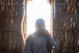 CHAD. 2017. Kelu Chari, a 32 year old in the Kadoulou IDP camp near Liwa in the Lake Chad basin, where refugees had settled after fleeing Boko Haram attacks on nearby islands. She had lost her hands in a Boko Haram attack on Blankani island.