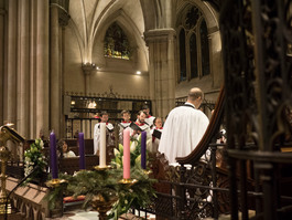 FRANCE, Paris, 2017/12/07. Memorial service and celebration for late John MORRIS, legendary picture editor ( Life Magazine, Magnum,...) on his 101th anniversary. in the American Cathedral on George V. Speakers: Canon Mary Haddad, John Morris II, Patricia Trocmé, Robert Pledge, David Kogan, Constance Borde and Joseph Smallhoover, Jim Bitterman, Angela Hewitt ( piano ).