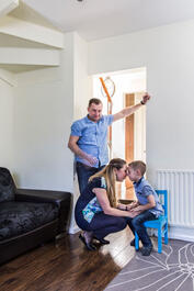 GB. England. London. 2015. Lithuanian, Neringa Salygieme, with her husband Erikas Salyga and son Nedas Salyga.