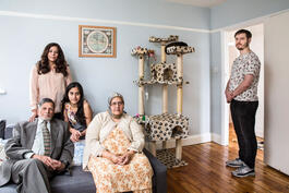 GB. England. London. 2015. Kenya and Pakistan, India. Suraiya Chaudhry and her grand parents, her mother, her partner and her cat.