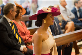Spain. Castile and León. Salamanca. Guests at a wedding in the old cathedral including this Spanish beauty. 2017