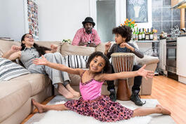 GB. England. London. 2016. From Democratic Republic of the Congo, Nickens Nkoso, partner Sabrina from Algeria and France, and children, Adam,8, and Jasmine 6.