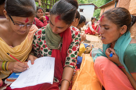 Nepal. 2017. Work for FAO Food and Agriculture Organisation, part of the UN. Village of Narapani near Sandhikharka. Women farmers meet weekly as a group sponsored by FAO to try and increase farm yeld and protect the environment. They come to gether to discuss and compare the results of their work.
