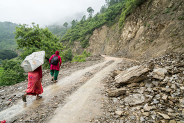 Nepal. 2017. Work for FAO Food and Agriculture Organisation, part of the UN. Landslides, soil erosion and flooding of the roads near Sandhikharka.