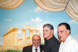 USA. Franklin Square, New York. 2017. Conservative Fox News commentator Sean Hannity with employees and management of Carmela's Pizzeria and Restaurant in Franklin Square, Long Island.
