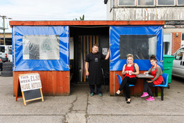 GB. England. Hull. 1st Street Catering & Cafe. Carl Simpson (L), Ellie Brown (Middle) & Libby Sutton (R). 2017.