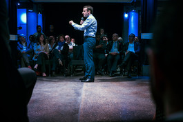 FRANCE, Paris, Saint-Denis. 2017/03/30. Emmanuel Macron campaigning for French President at meeting with young people from "polpular" neighbourhoods whose life has become a success story at cultural center "L'Usine".