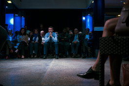 FRANCE, Paris, Saint-Denis. 2017/03/30. Emmanuel Macron campaigning for French President at meeting with young people from "polpular" neighbourhoods whose life has become a success story at cultural center "L'Usine".