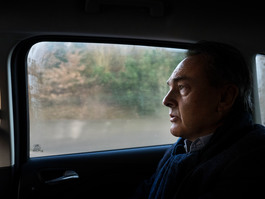Gilles Kepel, French political scientist, specialist in Islam, is seen in the car heading to Villepinte prison.