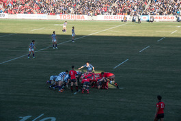 Japan. Tokyo. 2018. Rugby University Championship finals. With Meiji University (with purple tops), and who lost 20 - 21 to Teikyo University (in Red).