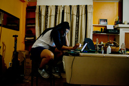 USA. Los Angeles, CA. 2016. Jay Butler, 27, Luis Hernandez's girlfriend.