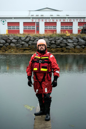 On the coast outside Reykjavik, a squad of coastal rescue workers on excersize on a weekend. Heimir Sigurdur Haraldsson, 41, the squad leader.