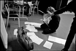 FRANCE. Bourgogne region. Nievre department. Nevers. 14th edition of the "Rencontres Internationes de D'Jazz" Festival. Dutch jazz musician Ernst REIJSEGER (cello). In the backstage, before the rehearsal and soundcheck. AMSTERDAM STRING TRIO. Thursday 16th November, 2000.