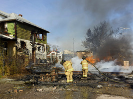 USA. Michigan. Flint. Fire in abandoned house. 11th November...