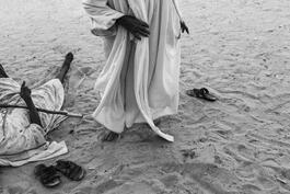 Ali and his friend waiting for their friends to play Kharbga; a traditional game.