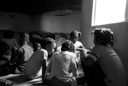 MEXICO. Tijuana. 2019. Iglesia Embajadores de Jesus shelter and church. Approximately 220 migrants, from Haiti and Central America, who live in tents inside of the church, wait in limbo for an opportunity to enter the U.S. having fled their home in hopes of a better future.