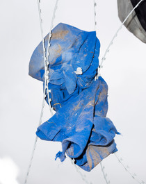 Abandoned clothes at the concetrina wire at the Mexican - U.S. border wall.