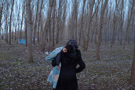 Turkey, Edirne. 2020. Sevsen fled with her disabled boy from Syria on 2016 and took refuge in Turkey, after her husband got killed in Idlib on 2015. She waits on Turkish Greek border near Evros river to cross by boat to Greece.