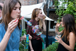 UK. England. London. Magnum annual meeting. Barbecue at Olivia and Philipp's house. Blowing bubbles. 2019