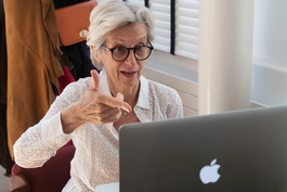 France. Paris 75010. COVID-19 coronavirus. Stuck at home. Isabelle Guillaud, professor of vocal technique at the CNSM, the main Paris conservatory, giving an online lesson via FaceTalk. 2020
