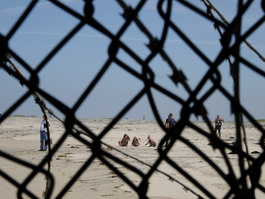 MEXICO. Tijuana. 2019. The United States seen from gaps in the...