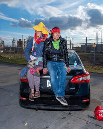 USA. Minneapolis, Minnesota. April 18, 2020. Chris Sayers, 51, has been homeless for 10 months. Last year his Ojibwe tribe, Red Lake Nation, started construction on a housing complex for the homeless in Minneapolis called Mino-Bimaadiziwin, which roughly translates as "live the good life." Chris had hoped to be living there by now but construction has been delayed because of the pandemic. When I met him, Chris and his girlfriend (name withheld) were waiting to have their car towed. "Each day is a gift," he told me, "it took me a long time to learn that, but now I'm a happy person. I'm just grateful to be alive."