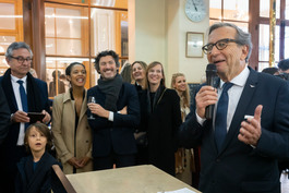 France. Paris. 75002. Wedding lunch in a restaurant. The father of the bride making a speech. 2019