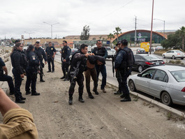 MEXICO, Tijuana, 2019/5. With crime photographer Margarito. Police chasing and arresting a scicario, cartel killer and kidnapper.