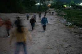 Mexico, near Ixmiquilpan, 2019/4. “Migrant Experience” reenacting of a night march of "Mexican illegal migrants to the US", organized by Eco Parc Alberto holiday resort for a group of about 100 Mexican high school students.