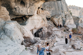 Hasankeyf, Turkey, 2019. Local tourists visit the historical caves in Hasankeyf old town, they're meant to be submerged under water in a few months.
