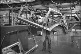 FRANCE. Ile-de-France region. Yvelines department. Flins-sur-Seine. Renault plant. Super 5 car assembly line. Sides of bodywork. Tuesday 11th September, 1984.