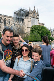 France. Paris. Notre Dame Cathedral on Easter Sunday, six days after the fire. Smartphone selfies. 2019