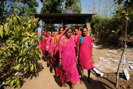 INDIA. Phangane Village, Maharastra. 2019. The grandmothers on their way home after a successful school day.