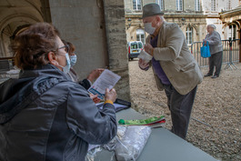 40,000 masks were purchased by the Community of Communes. Seven distribution points were set up in town.