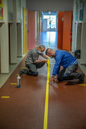 FRANCE. Normandy. Fecamp. May 11, 2020. Coronavirus crisis. End of lockdown. Preparation for schools' reopening. Primary school « Élémentaire Du Port ».