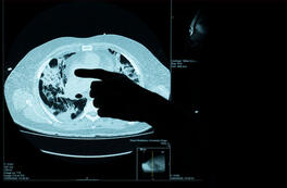 UK. 2020. London. West Middlesex University Hospital where medical staff are fighting COVID-19. On the day these photographs were taken the highest UK death toll was announced - 980. Radiology department examining the scan of lungs of a COVID patient.