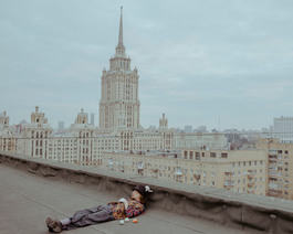RUSSIA. Moscow. April 3 , 2020. On a rooftop with Hotel Ukraina in the background.