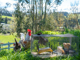 USA. Petaluma, California. March 25, 2020. The little chicks are growing up fast, so they got to be outside and meet their future harassers for a bit.