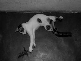 BRAZIL. Itacaré. April 4, 2020. Puti hunts a lizzard. Last week a cat decided to move in with us. Just like that. It seems that she is going to stay and has already started being the protector and the hunter of the hose. Since she arrived, there is less insects around and today she hunted a big lizzard and was playing with it for a long time. I never liked cats, but I have to admit that they are quite interesting animals.