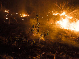 In the picture, a fier at night near the Pimentel Barbosa Indigenous Reservation.