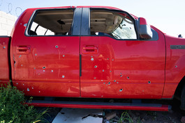 MEXICO. Caborca, Sonora. 2019. Bullet-ridden car caught in Sinaloa cartel shoot-out.