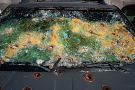 MEXICO. Caborca, Sonora. 2019. Bullet-ridden car caught in Sinaloa cartel shoot-out.