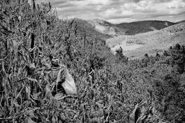 MEXICO. El Chuparosa, Guerrero. 2013. A farmer harvests corn.